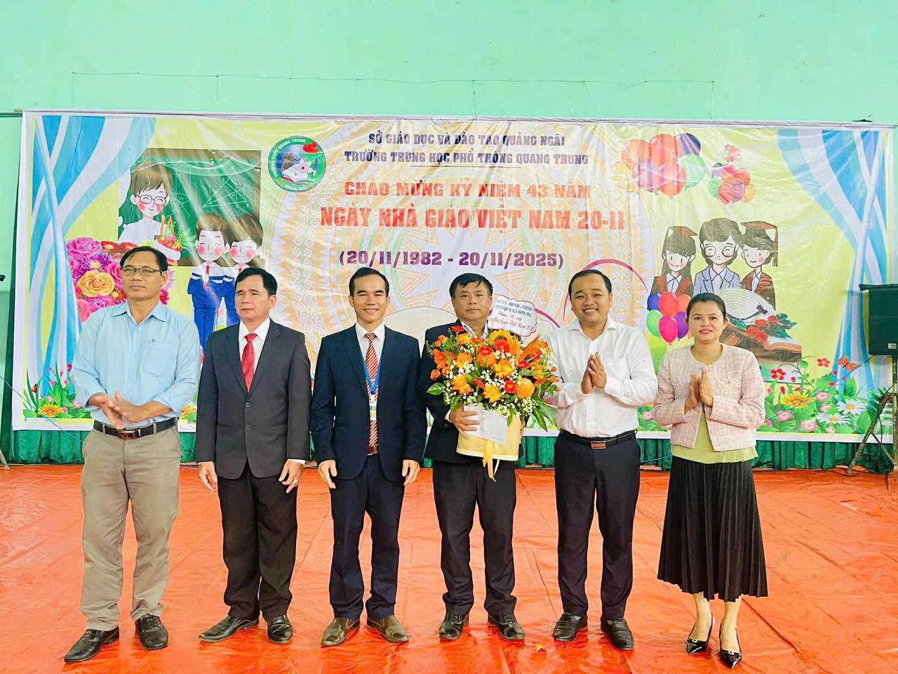 Sáng 17/11, đồng chí Lê Văn Vin - Bí thư Đảng ủy, Chủ tịch HĐND xã đã đến thăm, tặng hoa chúc mừng tập thể lãnh đạo, cán bộ giáo viên Trường THPT Quang Trung nhân kỷ niệm 43 năm ngày nhà giáo Việt Nam (20/11/1982 - 20/11/2025). Cùng đi trong đoàn có lãnh đạo Ban Xây dựng Đảng, Văn phòng Đảng ủy xã.
