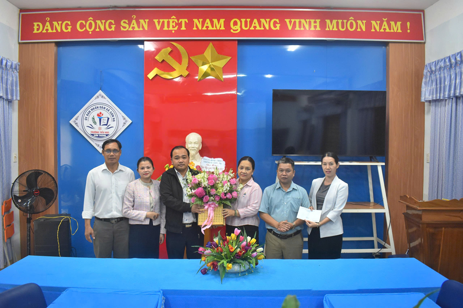 Cùng đi trong đoàn còn có các đồng chí: Phạm Văn Công - Ủy viên BTV Đảng ủy, Trưởng Ban xây dựng Đảng Đảng ủy xã; Lê Thị Hồng Nhung - Ủy viên BTV Đảng ủy, Chánh Văn phòng Đảng ủy xã; Đinh Hố - Đảng ủy viên, Phó Chủ tịch UBND xã. Tại các trường, thay mặt lãnh đạo xã, đồng chí Lê Văn Vin - Bí thư Đảng ủy xã, Chủ tịch HĐND xã đã tặng lẵng hoa tươi thắm và gửi lời chúc mừng tốt đẹp nhất tới Ban Giám hiệu, cán bộ, giáo viên nhà trường nhân kỷ niệm 43 năm ngày Nhà giáo Việt Nam (20/11/1982 – 20/11/2025).