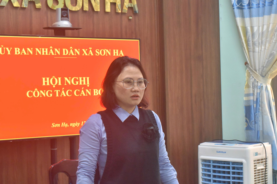 Tại hội nghị, lãnh đạo Phòng Văn hóa - Xã hội đã thông qua các Quyết định: Số 900/QĐ-UBND ngày 10/11/2025 của Chủ tịch UBND xã về việc phân công nhiệm vụ đối với bà Ngô Thị Trà, người hoạt động không chuyên trách đang hỗ trợ công việc cho Trung tâm Phục vụ hành chính công chuyển sang hỗ trợ công việc cho Trung tâm Cung ứng Dịch vụ công xã Sơn Hạ, kể từ ngày 12/11/2025.
