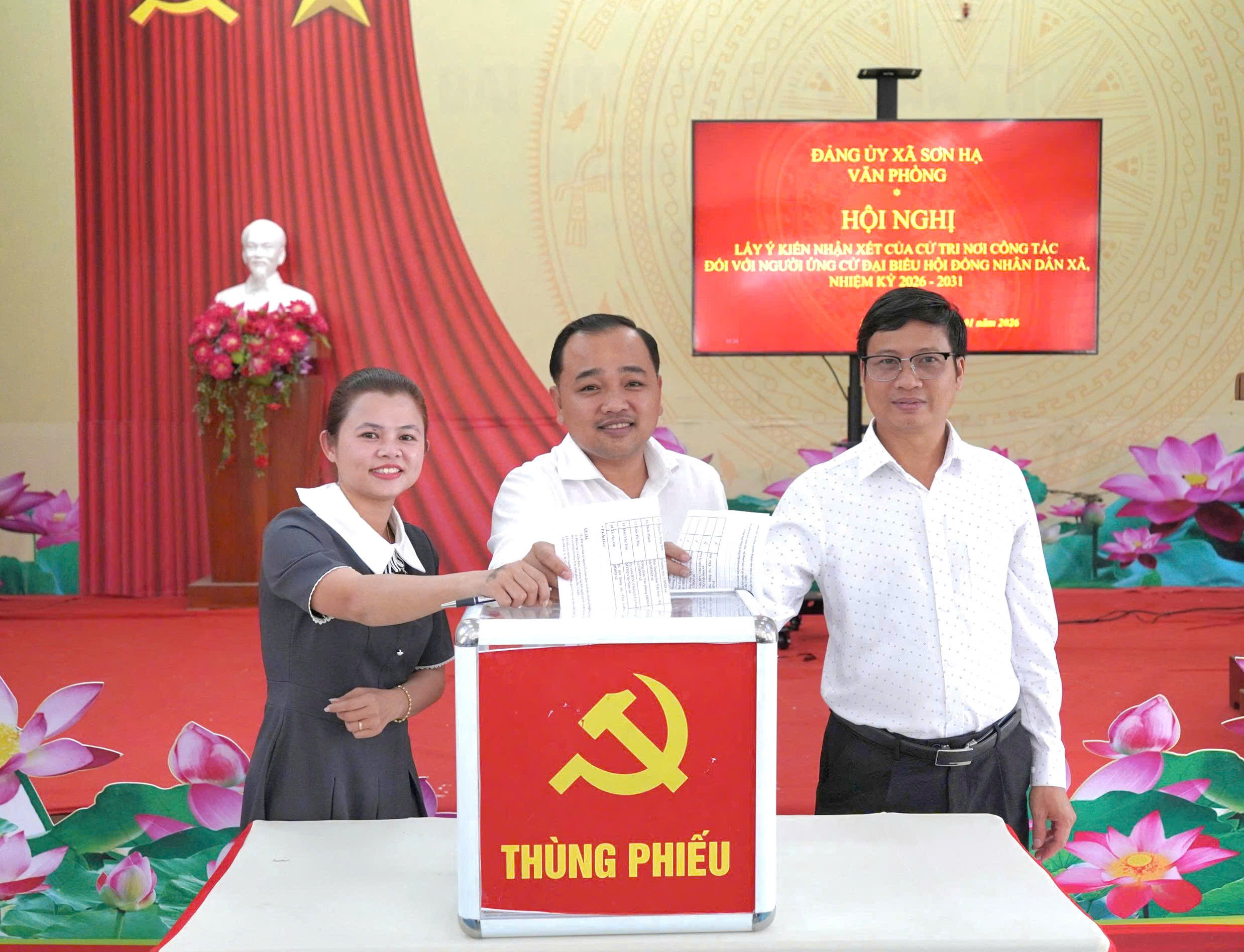 Thực hiện Kế hoạch số 05/KH-MTTQ-BTT ngày 28/11/2025 của Ban Thường trực Ủy ban MTTQ Việt Nam xã về tổ chức thực hiện quy trình hiệp thương, giới thiệu người ứng cử đại biểu HĐND xã Sơn Hạ, nhiệm kỳ 2026 –2031. Chiều ngày 06/01, Văn phòng Đảng ủy xã Sơn Hạ tổ chức Hội nghị lấy ý kiến nhận xét của cử tri nơi công tác đối với người được dự kiến giới thiệu ứng cử đại biểu HĐND xã nhiệm kỳ 2026 – 2031.