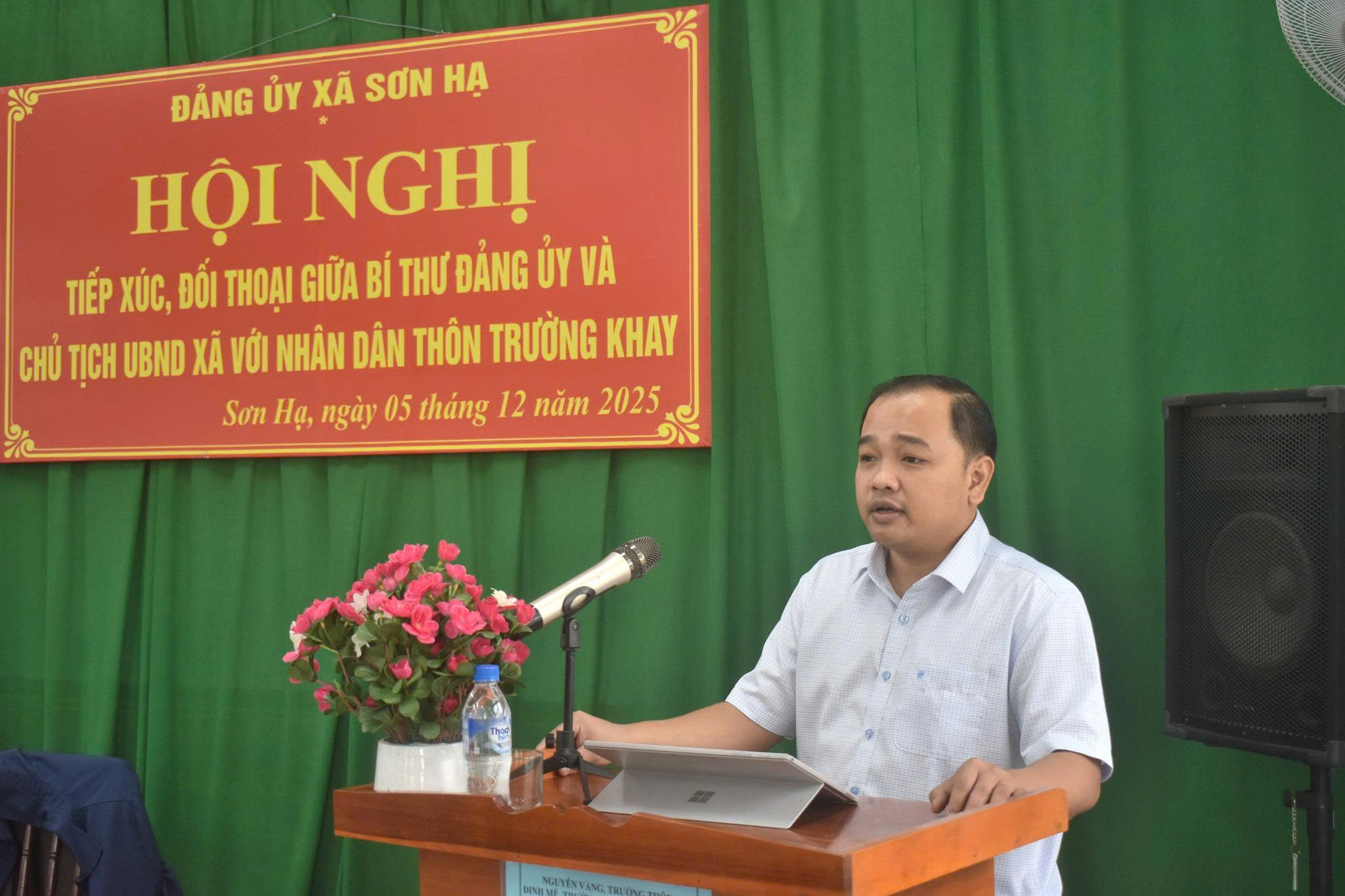 Nhằm lắng nghe, nắm bắt những tâm tư, nguyện vọng, khó khăn, vướng mắc, những kiến nghị, đề xuất của Nhân dân, từ đó kịp thời chỉ đạo giải quyết những ý kiến, kiến nghị liên quan đến nội dung phản ánh của Nhân dân trên địa bàn. Sáng ngày 05/12, Ban Thường vụ Đảng ủy xã Sơn Hạ tổ chức Hội nghị tiếp xúc, đối thoại giữa Bí thư Đảng ủy, Chủ tịch UBND xã với Nhân dân thôn Trường Khay. Các đồng chí Lê Văn Vin - Bí thư Đảng ủy, Chủ tịch HĐND xã; Võ Thị Xuân Liễu - Phó Bí thư Đảng ủy, Chủ tịch UBND xã đồng chủ trì Hội nghị. Tham dự có các đồng chí: Đinh Văn Ngoan – Phó Chủ tịch HĐND xã; lãnh đạo các cơ quan tham mưu, giúp việc Đảng ủy, các đơn vị, phòng chuyên môn xã.