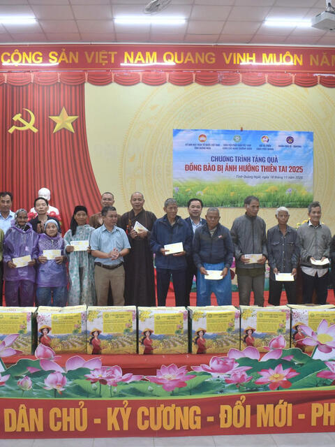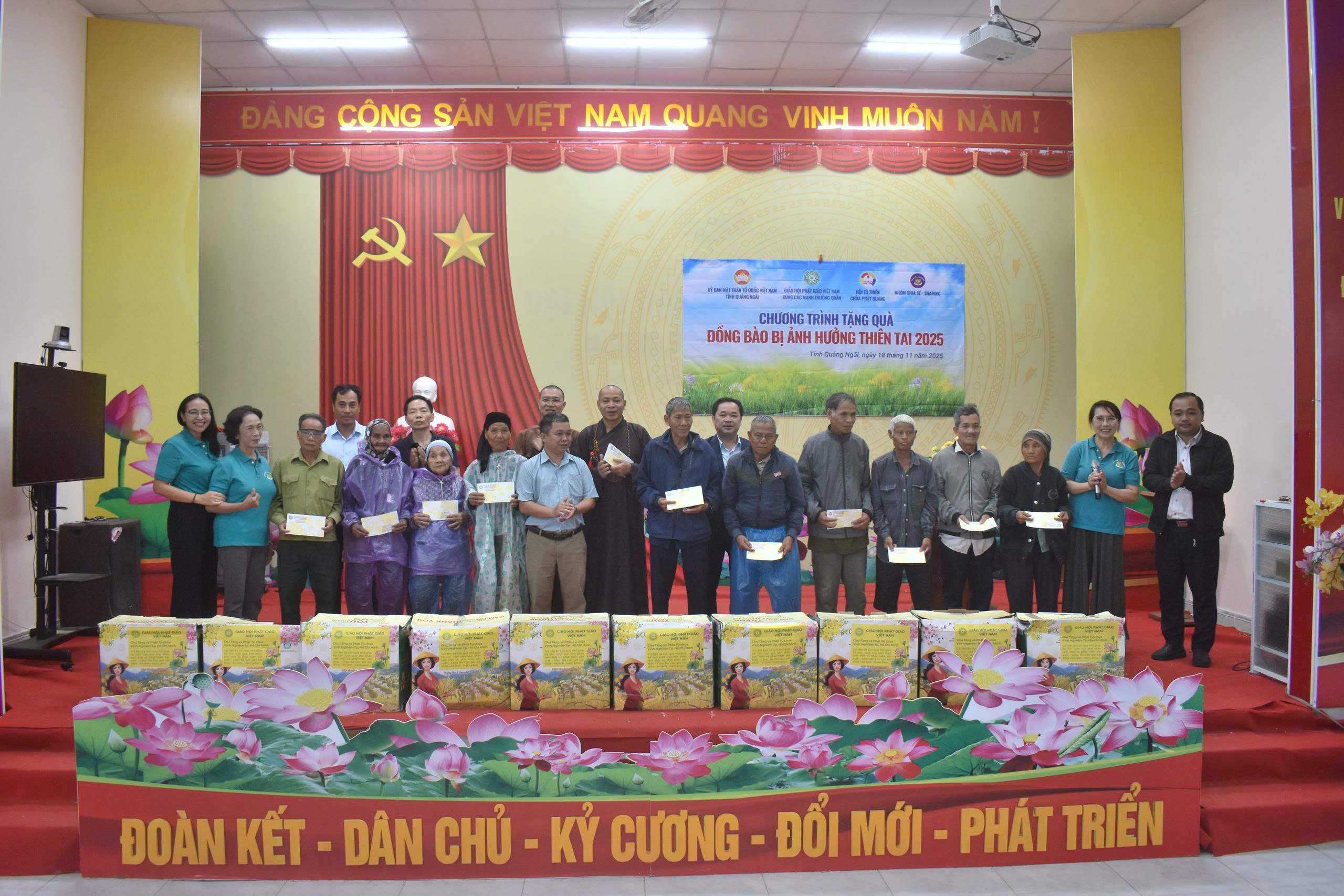 Tiếp nối truyền thống tương thân tương ái của dân tộc, nhằm đồng hành hỗ trợ, sẻ chia với người dân có hoàn cảnh khó khăn bị ảnh hưởng bởi mưa lớn, ngập lụt, sạt lở đất trong thời gian qua. Sáng nay (18/11), Ủy ban MTTQVN tỉnh; Giáo hội Phật giáo Việt Nam cùng các mạnh thường quân; Hội từ thiện Chùa Phật Quang; Nhóm chia sẻ Sharing phối hợp chính quyền địa phương tổ chức chương trình tặng quà cho bà con bị ảnh hưởng do thiên tại năm 2025 trên địa bàn xã Sơn Hạ. Dự chương trình có Thượng tọa Thích Trung Sơn - Phó trưởng ban kinh tế tài chính Trung ương Giáo hội Phật giáo Việt Nam; Ông Vương Hoàng Vân – Phó tổng giám đốc Tổng Công ty đầu tư Hợp Nghĩa; Ông Phạm Tấn Vũ – Phó tổng giám đốc Công ty cổ phần Môi trường – đô thị Quảng Ngãi.