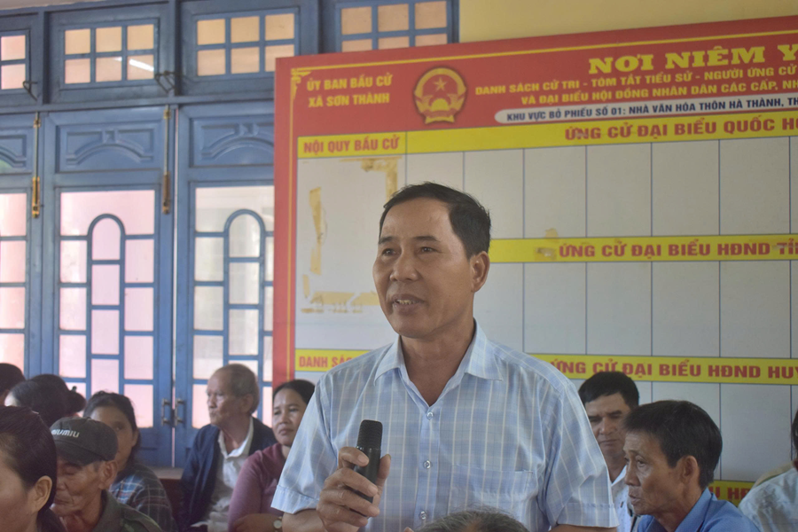 Bà con cử tri thôn Hà Thành đã có trên 15 lượt ý kiến liên quan đến các vấn đề đời sống dân sinh như: Tình hình an ninh trật tự trên địa bàn có nhiều diễn biến phức tạp, vì vậy đề nghị chính quyền địa phương đầu tư hệ thống Camera an ninh; lắp biển báo giảm tốc độ tại các khu vực trường học, đông dân cư để đảm bảo an toàn giao thông cho bà con nhân dân. Kiến nghị các ngành chức năng định hướng cây trồng phù hợp cho các khu vực ruộng một vụ thiếu nước hoặc đầu tư hệ thống kênh mương nội đồng để người dân sản xuất; quy hoạch, cắm mộc nghĩa địa để người dân có nơi an táng người đã khuất; người dân còn gặp nhiều khó khăn trong các thủ tục hồ sơ làm sổ đỏ, đăng ký kinh doanh…