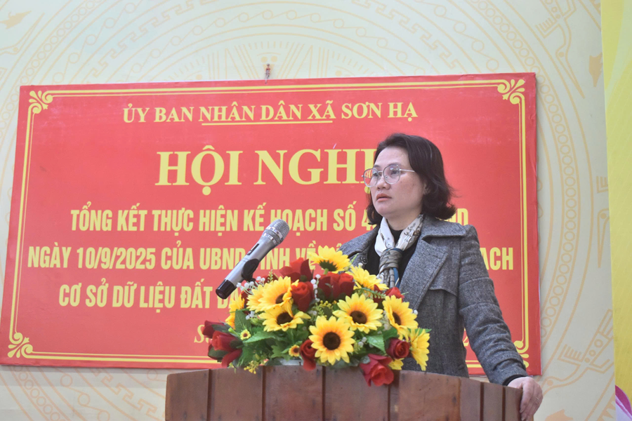 Báo cáo tại hội nghị, thực hiện Chiến dịch 90 ngày làm giàu, làm sạch cơ sở dữ liệu quốc gia về đất đai trên địa bàn, UBND xã thành lập Ban Chỉ đạo, thành lập 5 tổ giúp việc, 19 tổ thu thập cơ sở để triển khai thu thập dữ liệu đến địa bàn từng xóm, hộ gia đình. Đợt cao điểm diễn ra từ giữa tháng 10 đến hết tháng 11/2025. Kết quả, toàn xã 3.474 hồ sơ cần phải thu thập dữ liệu, trong đó: 3.256 hồ sơ thu thập GCNQSD đất ở, 218 hồ sơ cần làm sạch dữ liệu đất đai. Đến nay, đã thu thập được 2.088/3.474 hồ sơ đạt tỷ lệ 60,10%; trong đó, làm giàu dữ liệu đất đai là 1.904 hồ sơ, làm sạch dữ liệu là 184 hồ sơ; không thể thu thập được là 898 hồ sơ; chưa thu thập được là 488 hồ sơ.
