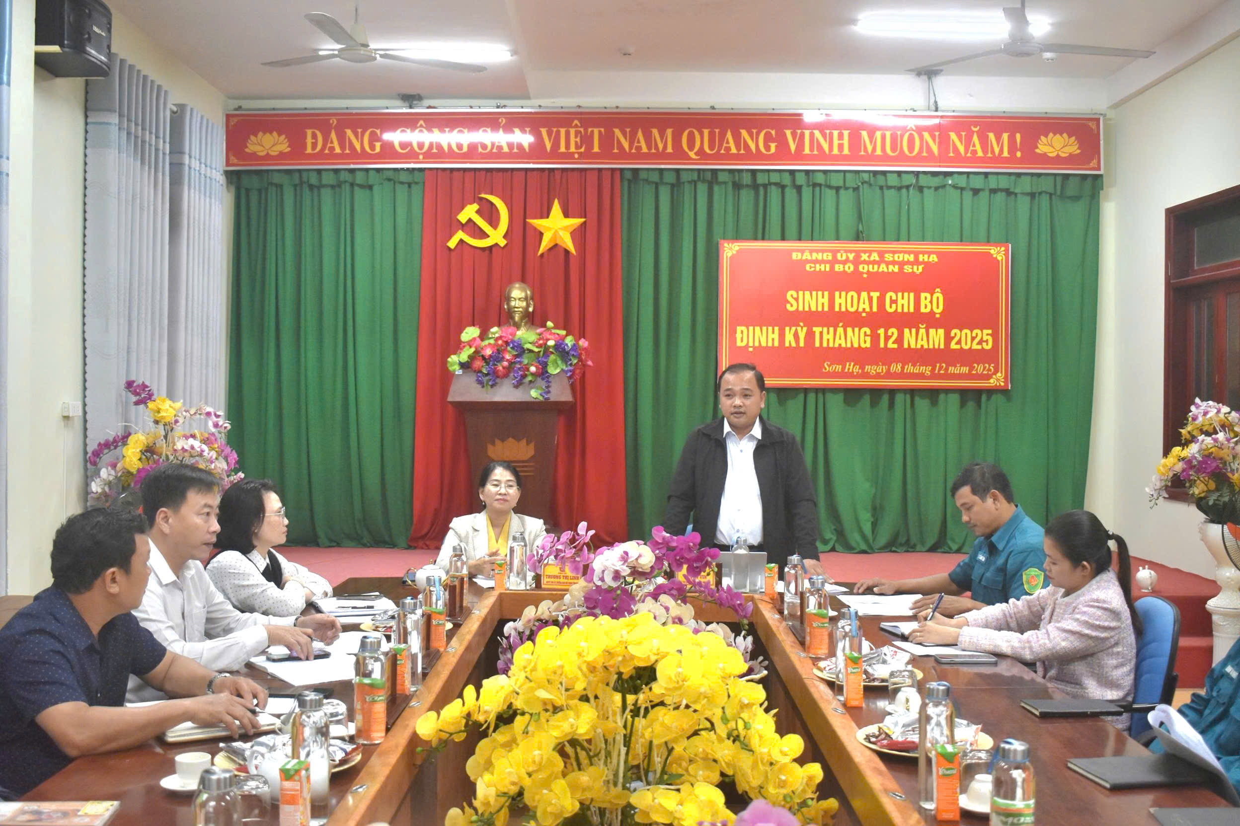Phát biểu tại buổi sinh hoạt, đồng chí Trương Thị Linh - Ủy viên BTV, Trưởng Ban Nội Chính Tỉnh ủy ghi nhận, đánh giá cao sự chuẩn bị của Chi bộ trong đợt sinh hoạt lần này, đặc biệt là áp dụng chuyển đổi số vào phục vụ sinh hoạt. Đồng chí cũng đề nghị, trong thời gian đến, Chị bộ Quân sự tiếp tục tăng cường nắm chắc tình hình an ninh – quốc phòng trên địa bàn, chủ động tham mưu cho cấp ủy, chính quyền xã các phương án giữ vững ổn định, nhất là dịp cuối năm và trước, trong và sau Tết Nguyên đán; tập trung hoàn thành chỉ tiêu tuyển chọn, gọi công dân nhập ngũ năm 2026; nâng cao chất lượng hoạt động lực lượng dân quân tự vệ, duy trì nghiêm chế độ trực sẵn sàng chiến đấu; làm tốt công tác phối hợp giữa Quân sự, Công an, các đơn vị, phòng chuyên môn, các tổ chức chính trị xã hội trong thưc hiện nhiệm vụ; tiếp tục nâng cao chất lượng sinh hoạt chi bộ, sinh hoạt chuyên đề của chi bộ…