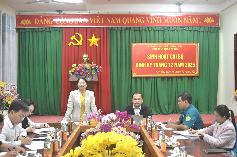 Thực hiện Chỉ thị số 50-CT/TW ngày 23/7/2025 của Ban Bí thư về tiếp tục đổi mới và nâng cao chất lượng sinh hoạt chi bộ trong giai đoạn mới; Chương trình công tác của Tỉnh ủy năm 2025. Đồng thời, nhằm tăng cường mối liên hệ giữa cấp ủy cấp trên với cơ sở. Tối ngày 8/12, đồng chí Trương Thị Linh - Ủy viên BTV, Trưởng Ban Nội Chính Tỉnh ủy về dự sinh hoạt chi bộ định kỳ tháng 12 tại Chi bộ Quân sự xã. Cùng dự sinh hoạt chi bộ có các đồng chí: Lê Văn Vin - Bí thư Đảng ủy, Chủ tịch HĐND xã; Võ Thị Xuân Liễu - Phó Bí thư Đảng ủy, Chủ tịch UBND xã; các đồng chí trong BTV Đảng ủy xã.