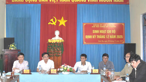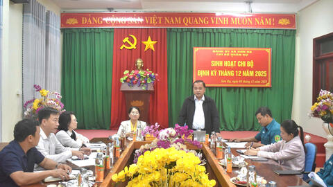 Trưởng Ban Nội Chính Tỉnh ủy Trương Thị Linh về dự sinh hoạt chi bộ định kỳ tháng 12 tại Chi bộ Quân sự xã Sơn Hạ.